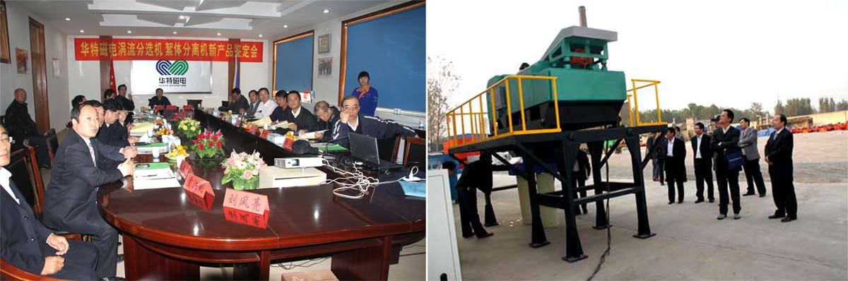 2010年10月30日,由公司承擔(dān)完成的山東省技術(shù)創(chuàng)新計(jì)劃項(xiàng)目“強(qiáng)磁場渦流分選機(jī)”和“稀土永磁絮體分離機(jī)”兩項(xiàng)新產(chǎn)品省級鑒定會在臨朐召開。會議由山東省科技廳、山東省經(jīng)信委組織,濰坊市科技局和濰坊市經(jīng)信委聯(lián)合主持。來自中國科學(xué)院電工研究所、中色科技股份有限公司、山東大學(xué)、山東科技大學(xué)、煙臺大學(xué)、山東省環(huán)境保護(hù)科學(xué)研究設(shè)計(jì)院、山東省機(jī)械設(shè)計(jì)研究院等單位的專家教授應(yīng)邀到會。臨朐縣政府副縣長趙同祥致歡迎辭。