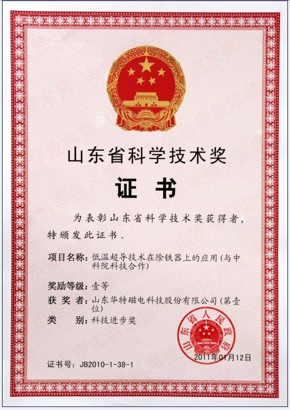 2月28日上午,山東省科學(xué)技術(shù)獎勵大會在濟南召開,表彰我省科技事業(yè)發(fā)展和現(xiàn)代化建設(shè)作出突出貢獻的科技工作者。省委書記、省人大常委會主任姜異康,省委副書記、省長姜大明等省委、省政府領(lǐng)導(dǎo)出席會議并為獲獎?wù)叽眍C發(fā)獲獎證書。我公司與中科院高能物理所合作研發(fā)的“低溫超導(dǎo)技術(shù)在除鐵器上的應(yīng)用”榮獲山東省科技進步獎一等獎并受到表彰。