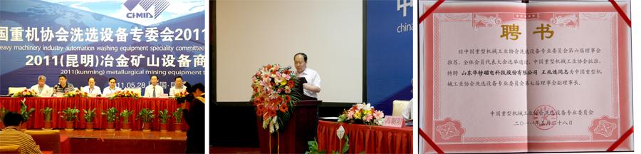 5月28日,中國重機協會洗選設備專委會2011年會員代表大會暨2011(昆明)冶金礦山設備商貿洽談會在昆明高原明珠大酒店舉行,公司董事長兼總經理王兆連出席會議。