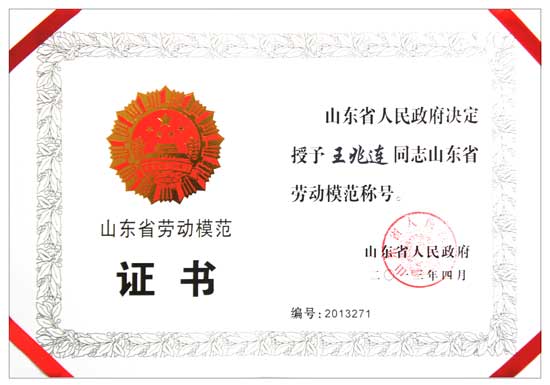 熱烈祝賀公司董事長兼總經(jīng)理王兆連被山東省人民政府授予山東省勞動模范