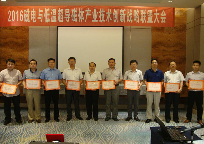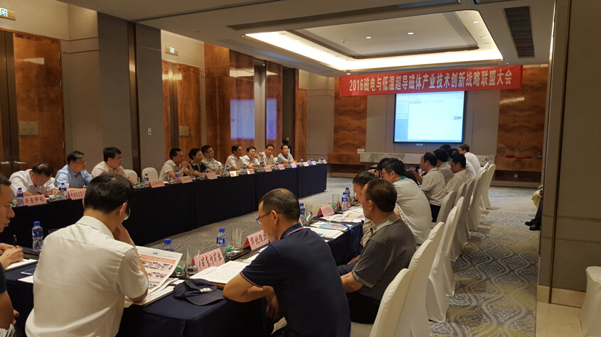 2016年6月22日,“磁電與低溫超導磁體應用產(chǎn)業(yè)技術創(chuàng)新戰(zhàn)略聯(lián)盟”年會在河北唐山香格里拉大酒店隆重召開。本次年會特邀科技部政策法規(guī)司原副司長李新男、中國重機協(xié)會洗選設備專委會秘書長呂英凡、酒鋼集團選燒廠葉傳勇科長出席,以及來自聯(lián)盟單位的代表共60余人出席會議。會議由聯(lián)盟秘書長、山東華特磁電科技股份有限公司常務副總劉風亮主持。