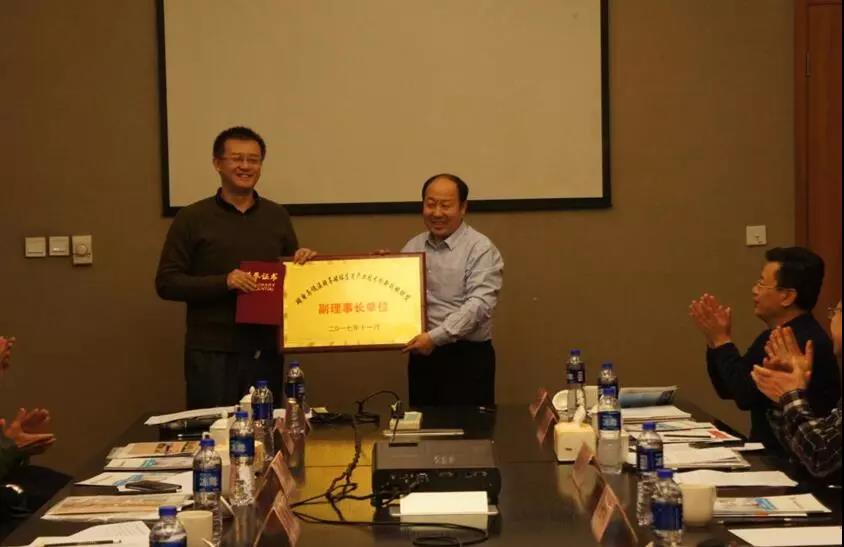 報告結束后,聯盟副理事長單位河北鋼鐵集團礦業公司技術中心科技管理科科長王得志高級工程師宣讀了關于增選蘇州朗潤醫療系統有限公司為聯盟副理事長單位的決定,經參會代表舉手表決,一致同意通過。聯盟理事長王兆連為唐昕董事長頒發聯盟副理事長單位證書。