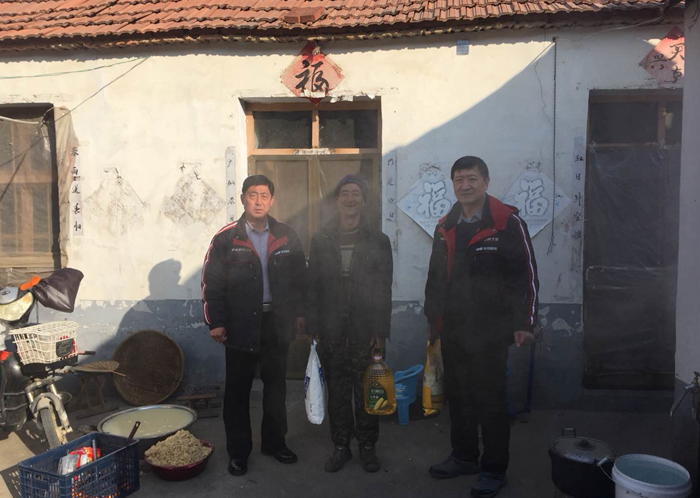 在老莊子村,慰問組在村兩委成員的陪同下,走訪慰問了25個因病、因傷等情況致貧的困難戶。慰問組每到一戶都主動詢問他們的家庭情況、經(jīng)濟來源、生活條件以及他們生活中的困難,為他們送去了油、米、面等生活用品,帶去了公司董事長王兆連和全體員工的關(guān)懷與祝福。鼓勵他們歡歡樂樂過春節(jié),健健康康迎新年。告訴他們黨和政府不會忘記他們,遇到困難及時聯(lián)系,村兩委和華特磁電公司是他們堅強的后盾。
