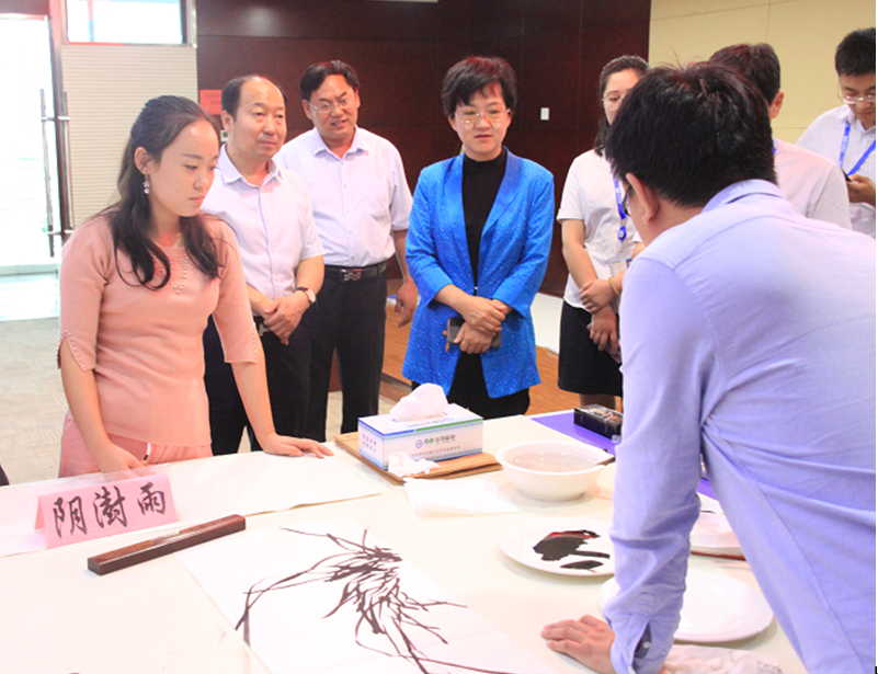 祝帥博士代表書畫家們發表了熱情洋溢的講話。他表示,通過實地參觀考察華特公司,了解企業高科技學術成果,對于華特精神有四點深刻體會:一是堅持,即長期堅韌不拔的堅持精神,支持華特走過了二十五風雨歷程,不斷創造新的輝煌。二是國際,即立足臨朐,放眼世界,在國際市場上依靠科技創新與國際合作做強做大企業。三是創新,整個企業充滿了創新氣氛,高科技、新產品的推陳出新成為華特成長發展的主旋律。四是責任,華特在公益慈善事業、捐助貧困大學生、抗洪救災等方面投入大量的人力物力,令人感動。最后,他為華特贈送了經典詞語:華威馳遠;特立先行。祝帥老師的講話引起了陣陣掌聲。