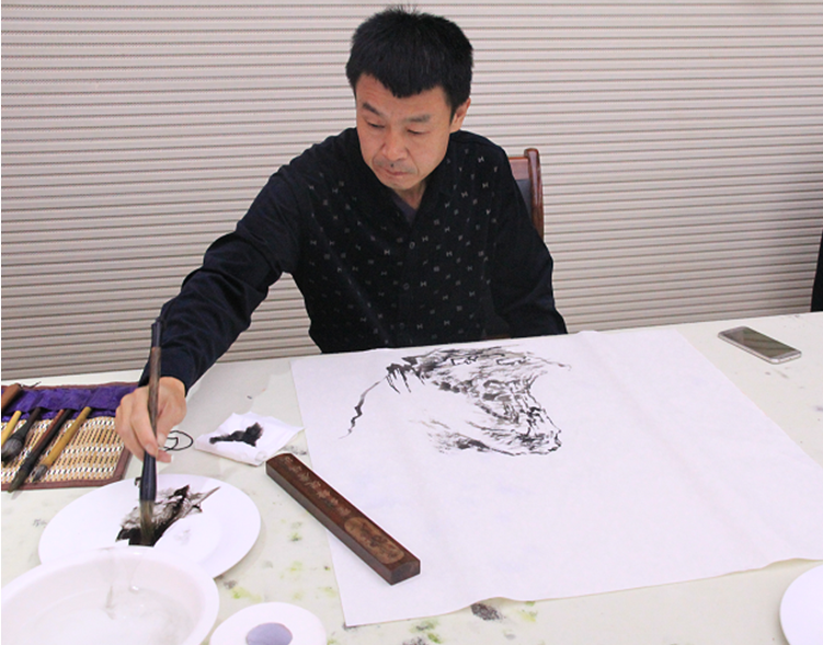 短暫的座談會后,畫家們來到了公司二樓多功能大廳開始了書畫創作。臨朐美術名家參加活動的有:傅立、白星安、王法生、姜會信、王春國;臨朐書法名家參加活動的有:張頤人、宋智利、劉建華、周世民、楊文梁。老師們書畫創作的熱情高漲,一直創作到下午1:00才收筆。