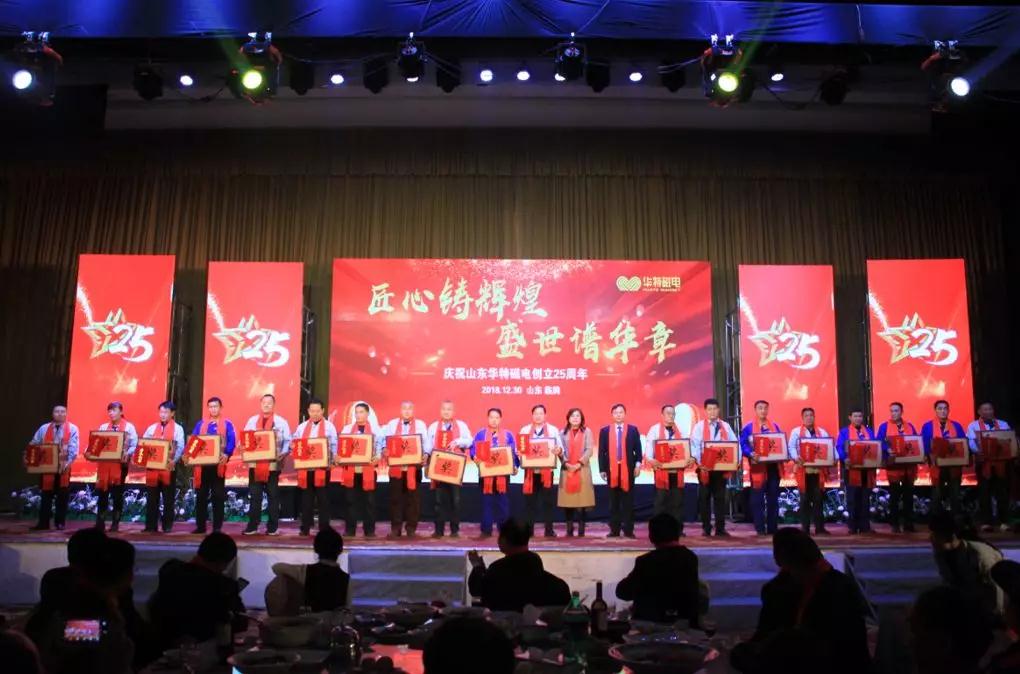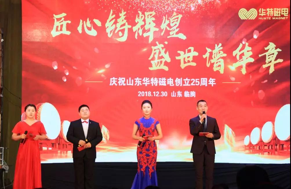 12月30日上午,山東華特磁電科技股份有限公司迎來了建企二十五周年慶典,臨朐經(jīng)濟(jì)開發(fā)區(qū)管委會主任、城關(guān)街道黨工委書記白文玉,經(jīng)濟(jì)開發(fā)區(qū)管委會副主任、街道黨工委委員尹德忠,華特公司董事長兼總裁王兆連、常務(wù)副總裁劉風(fēng)亮、高級副總裁劉梅等領(lǐng)導(dǎo)與全體員工相聚臨朐攬翠湖溫泉度假村,一起回顧二十五年風(fēng)雨征程,共同感受二十五載創(chuàng)業(yè)輝煌。