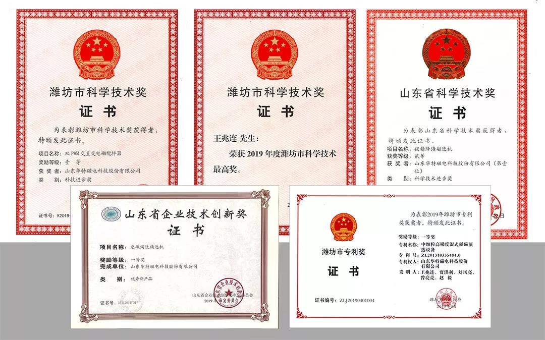 這一年,我們大力實施創(chuàng)新驅(qū)動發(fā)展戰(zhàn)略,激發(fā)企業(yè)創(chuàng)新活力,技術研發(fā)能力、創(chuàng)新成果穩(wěn)居行業(yè)龍頭。與馬鞍山礦院專家聯(lián)合研發(fā)的提精降渣磁選機,采用全磁選工藝替代反浮選工藝,縮短選礦工藝流程,實現(xiàn)了批量化生產(chǎn),獲山東省科技進步二等獎;“雙PWM交直交電磁攪拌器”榮獲山東省第四屆智能制造創(chuàng)新創(chuàng)業(yè)大賽一等獎、第三屆山東省科技工作者創(chuàng)新大賽一等獎,濰坊市科技進步一等獎;“電磁淘洗精選機”榮獲山東省優(yōu)秀新產(chǎn)品一等獎、入圍“2019山東制造?硬科技TOP50品牌榜”,榮獲中國冶金礦山科學技術獎一等獎;“中細粒高梯度濕式強磁預選設備”榮獲濰坊市專利一等獎。